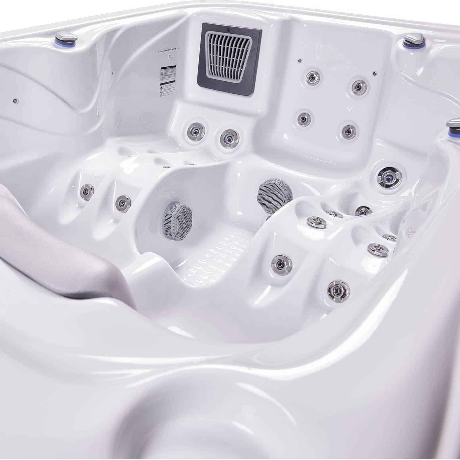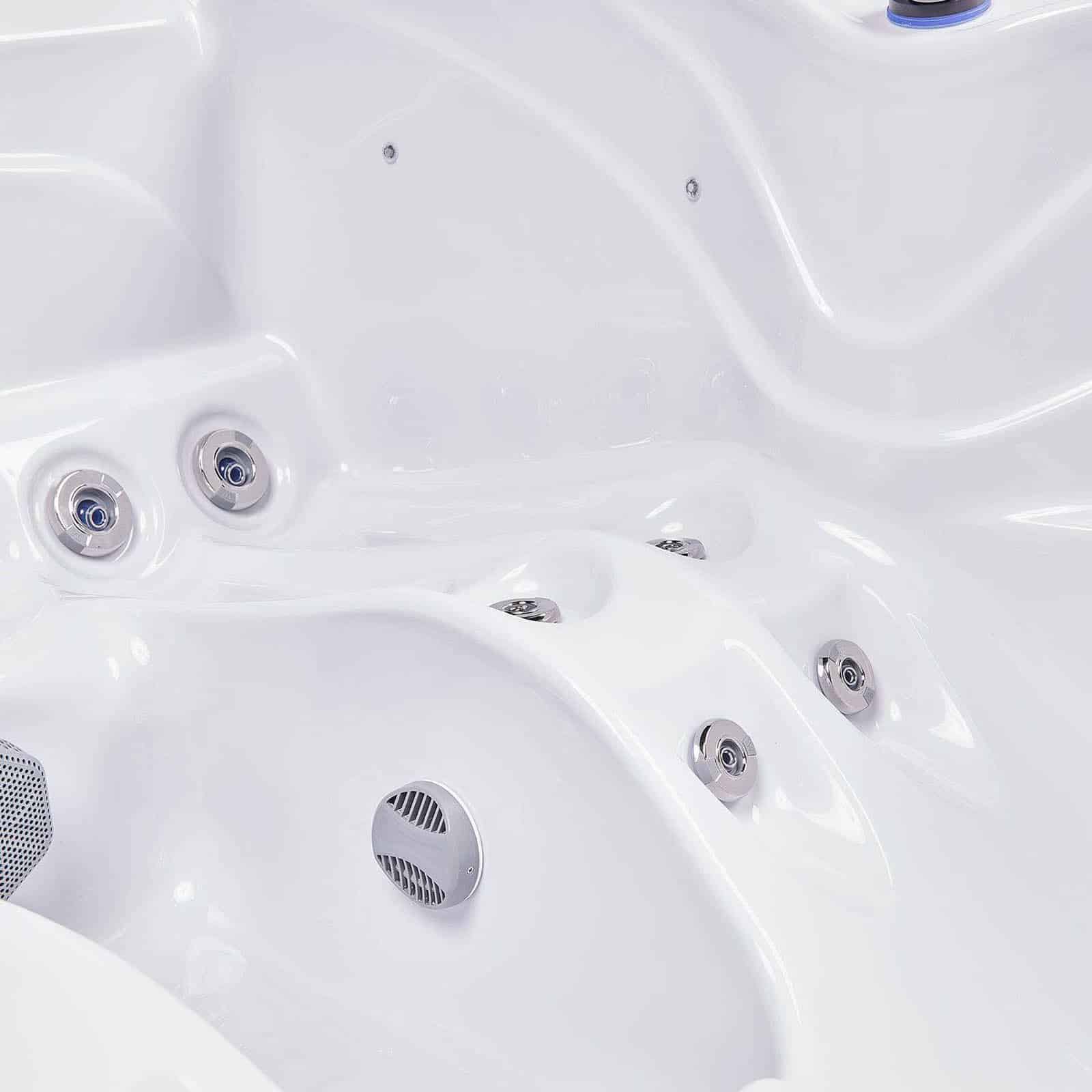 The Atlanta hot tub is designed for couples, featuring dual reclining lounges and 37 strategically placed jets for full-body relaxation. Its MySeat™ design eliminates height discomfort, while adjustable neck and leg massage jets ease tension from head to toe.
