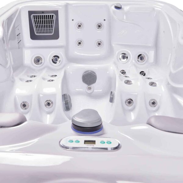 The two reclining lounges in the Atlanta hot tub, positioned next to each other, ensure excellent relaxation for couples. The design of the MySeat™ place eliminates inconveniences caused by differences in height. Due to its 29.5″ height, this hot tub easily fits through a normal front door.