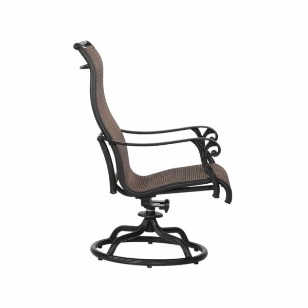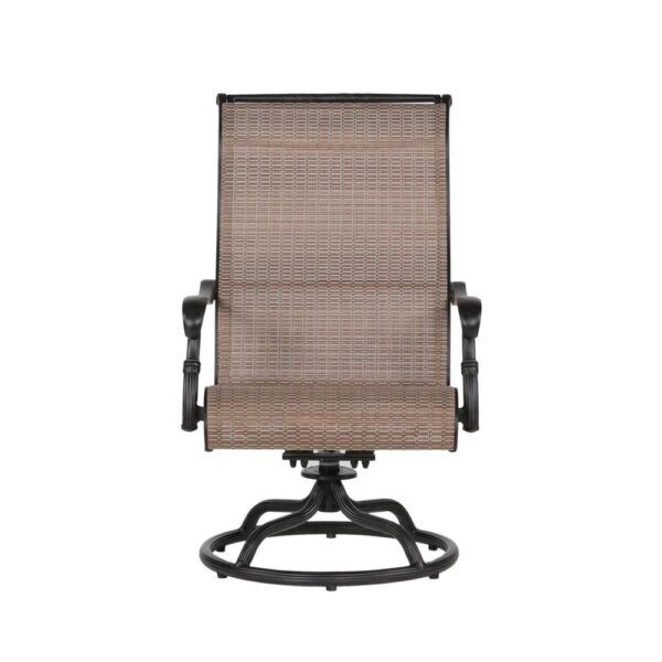 The Castle Rock Collection Sling Swivel Rockers Dining Chair Set adding beauty and function to your outdoor living space.