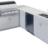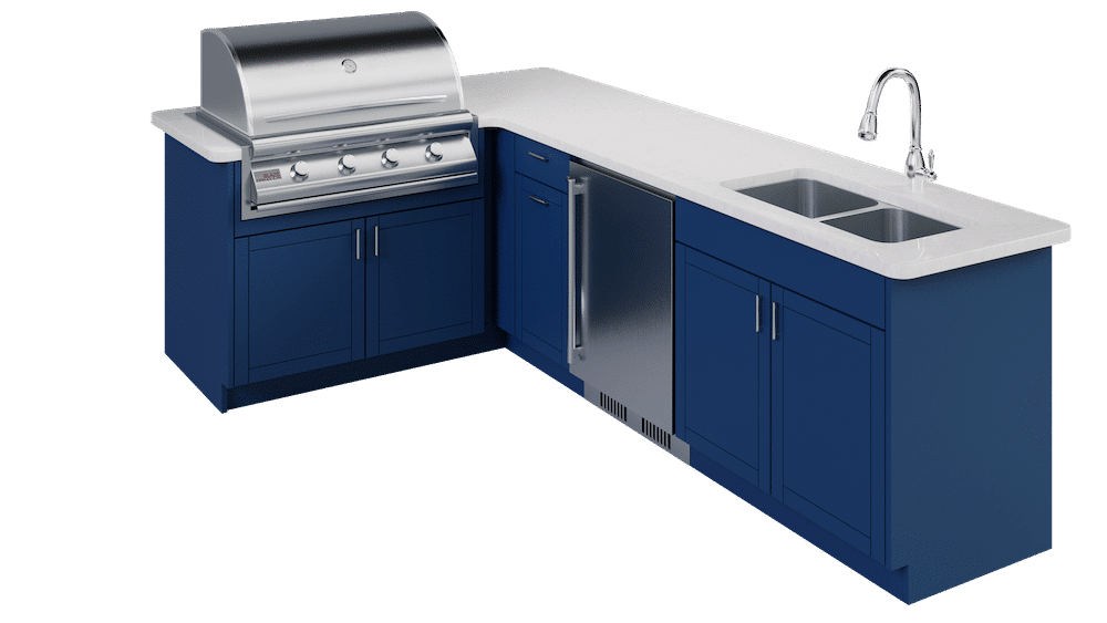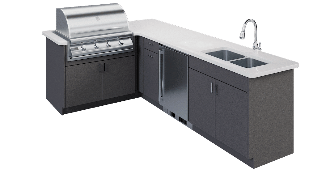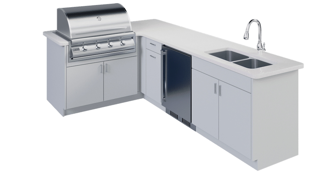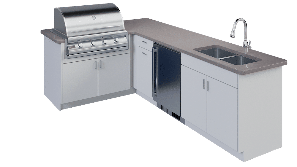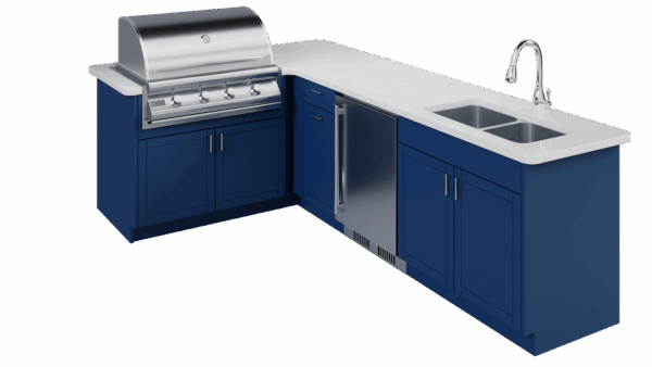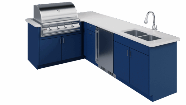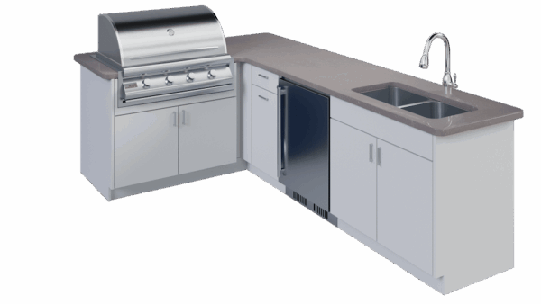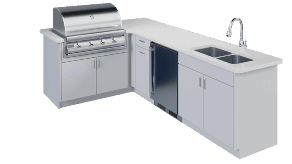 - Includes: High Performance Gas Grill, 24″ Refrigerator, Double Sink with Faucet