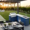Since 1954 the DeSavino family have been crafting the finest cabinetry, offering luxury outdoor kitchens for your extended entertainment and cooking needs. Since then, we have devoted much time and energy into creating a sustainable, responsible and beautiful product. Today we offer you durable and sustainable marine-grade polymer outdoor kitchens. Our custom designed, pre configured outdoor kitchens, extends your living beyond the walls of your home. Our L shaped, large prep area, island style kitchen comes with a 304 stainless steel/56,000 BTU gas grill, 304 stainless steel under-mount double sink with faucet and 24″ refrigerator. The prep area is made of high quality, Corian® Solid Surface counters and the cabinetry is made of solid 3/4″ thick High Density Polyethylene (HDPE) marine grade polymer. We are an environmentally aware company offering top quality outdoor kitchens. Experience al fresco dining from the comfort of your own backyard.
