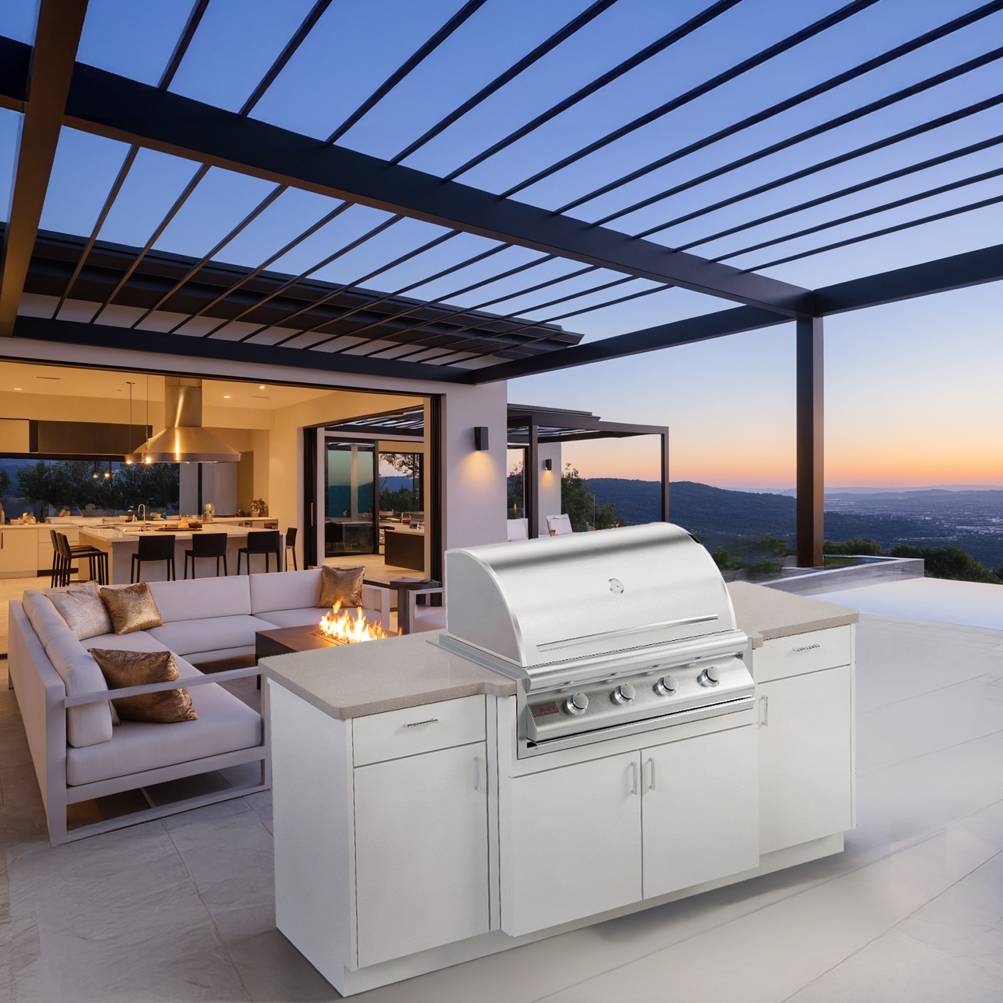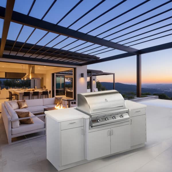 Since 1954 the DeSavino family have been crafting the finest cabinetry, offering luxury outdoor kitchens for your extended entertainment and cooking needs. Since then, we have devoted much time and energy into creating a sustainable, responsible and beautiful product. Today we offer you durable and sustainable marine-grade polymer outdoor kitchens. Our custom designed, pre configured outdoor kitchens, extends your living beyond the walls of your home. Our straight run, 2 prep area, island style kitchen comes with a 304 stainless steel/56,000 BTU gas grill. The prep area is made of high quality, Corian® Solid Surface counters and the cabinetry is made of solid 3/4″ thick High Density Polyethylene (HDPE) marine grade polymer. We are an environmentally aware company offering top quality outdoor kitchens. Experience al fresco dining from the comfort of your own backyard.