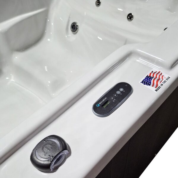 USA 4-person lounger spa is a 120-volt Plug and Play, 10 stainless steel jet acrylic spa. This rectangle shaped spa also features a powerful 1.5 HP, 2-speed pump and a 1kW stainless steel heater maintaining the perfect water temperature. The spa shell is manufactured with Lucite-Xtra Acrylic and a 3-layer strengthening process called Dura-Bondâ„¢. The Pure Water Management System includes our factory installed ozone water care system allowing for use of fewer chemicals, saving you money while keeping the water clear and clean.